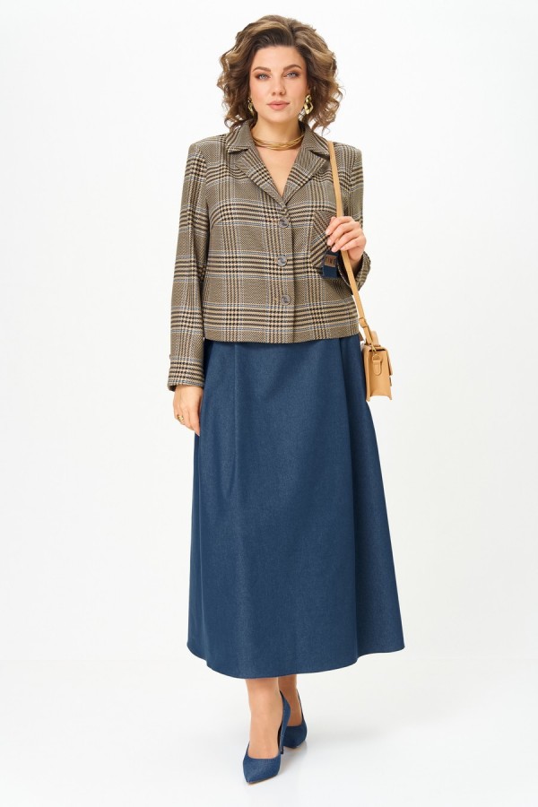Состав:Жакет ПЭ 70%, Вискоза 21%, Лен 9%. Юбка ПЭ 73%, вискоза 25%, эластан 2%