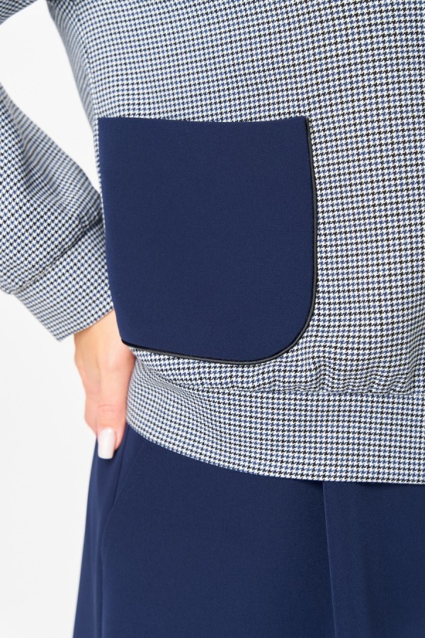 Состав:Бомбер ПЭ 63%, вискоза 34%, эластан 3%. Юбка ПЭ 73%, вискоза 25%, эластан 2%