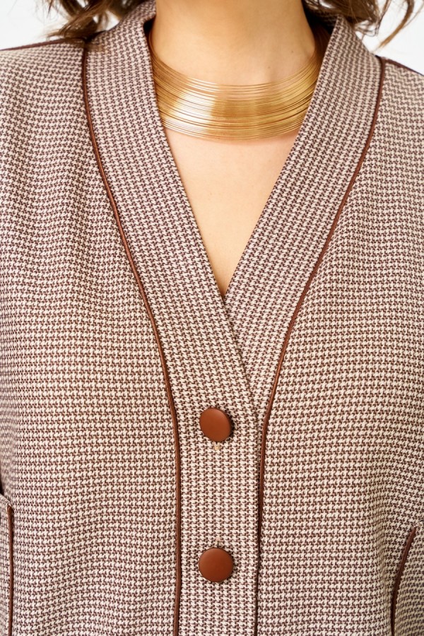 Состав:Жакет ПЭ 63%, вискоза 34%, эластан 3%. Юбка ПЭ 73%, вискоза 25%, эластан 2%