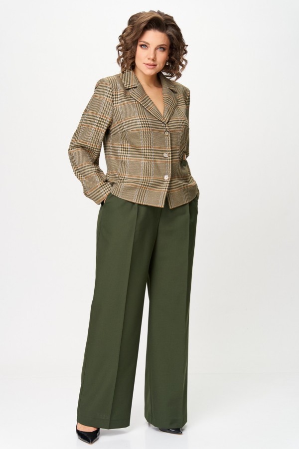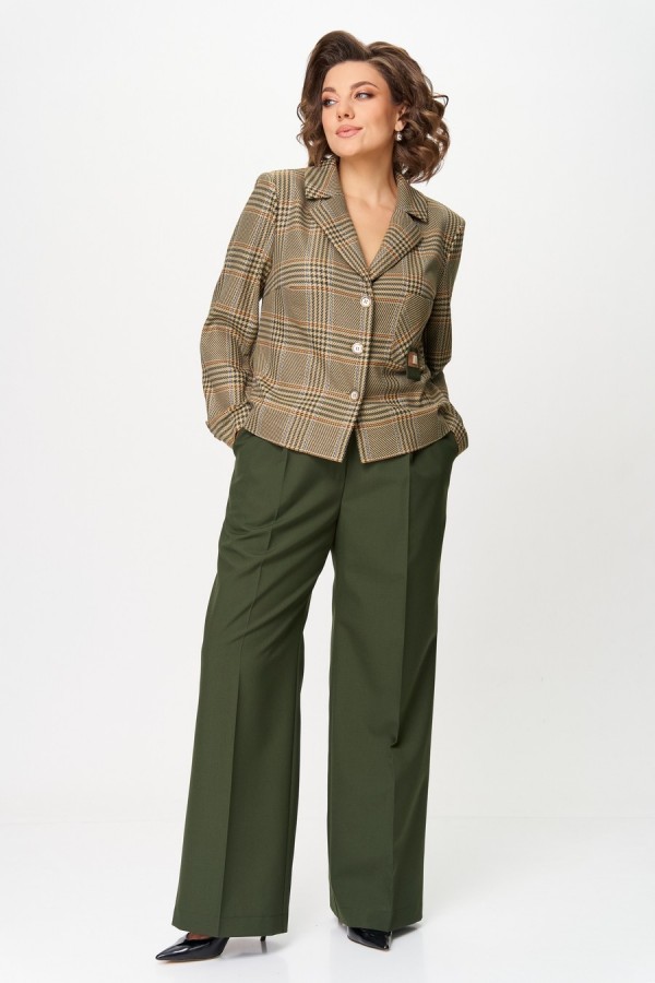 Состав:Жакет- ПЭ 70%, вискоза 21%, лен 9%, Брюки ПЭ 65%, Вискоза 32%, спандекс 3%