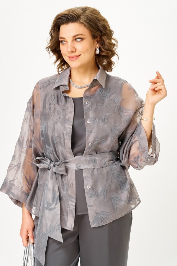 Состав:Блузон органза веточки 100%П/ЭБлуза, Брюки платьево-костюмного ассортимента 80%П/Э, 18%вискоза, 2%спандекс