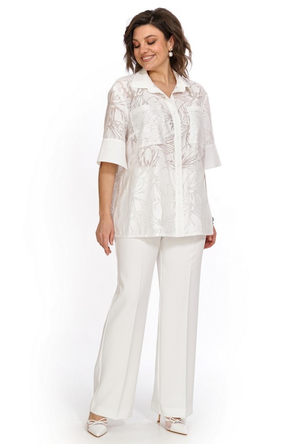 Состав:блузочного ассортимента 61% вискоза, 25%нейлон, 14%П/Э Брюки -костюмного ассортимента 95%П/Э, 6%спандекс