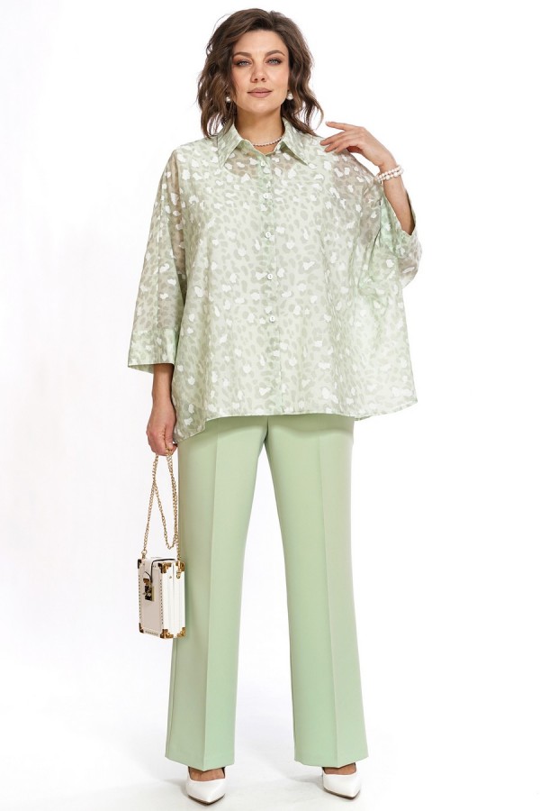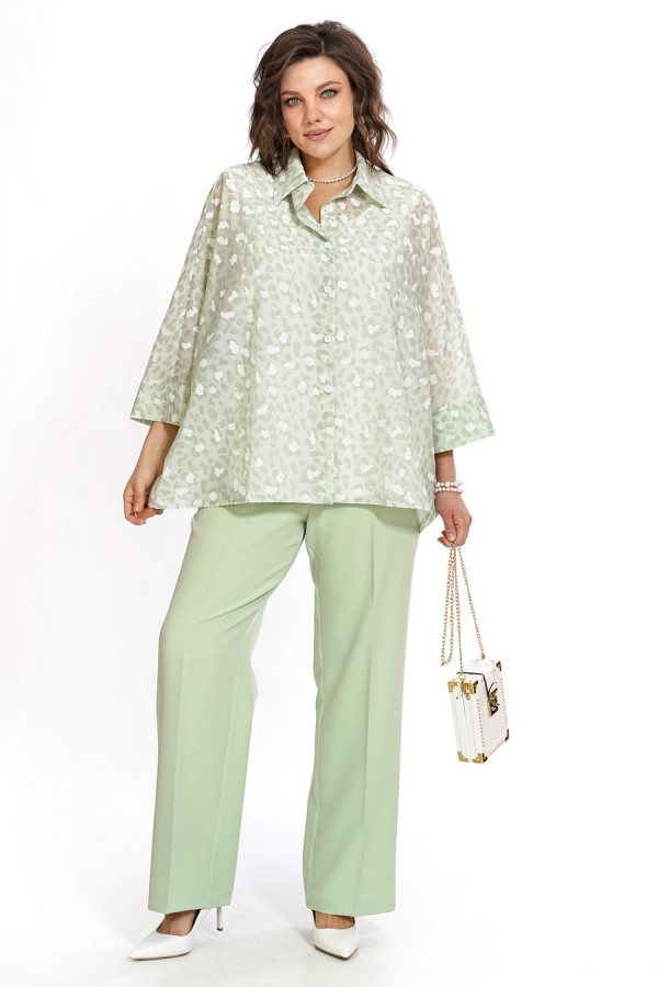 Состав:Блузон 62%вискоза, 25%нейлон, 14%полиэстер; Блуза 73%П/Э, 21%вискоза, 6%спандекс; Брюки 65%П/Э, 33%вискоза, 2%спандекс