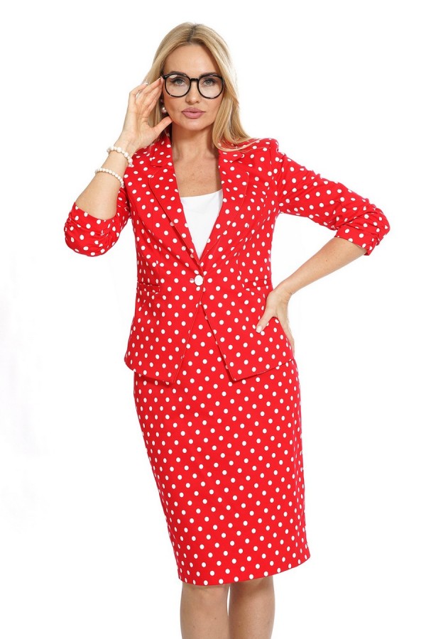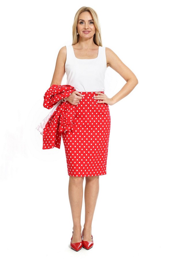 Состав:Жакет, Юбка платьево-костюмного ассортимента 97%хлопок, 3%спандекс; Топ трик. полотно «вискоза» 66%вискоза, 30%нейлон, 4%спандекс