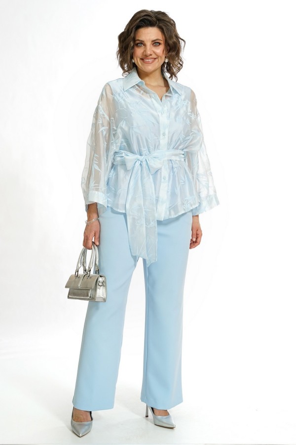 Состав:Блузка платьево-блузочного ассортимента 100%П/Э. Блуза платьево-костюмного ассортимента 80%П/Э, 18%вискоза, 2%спандекс .Брюки платьево-костюмного ассортимента 69%П/Э, 29%вискоза,2%эластан