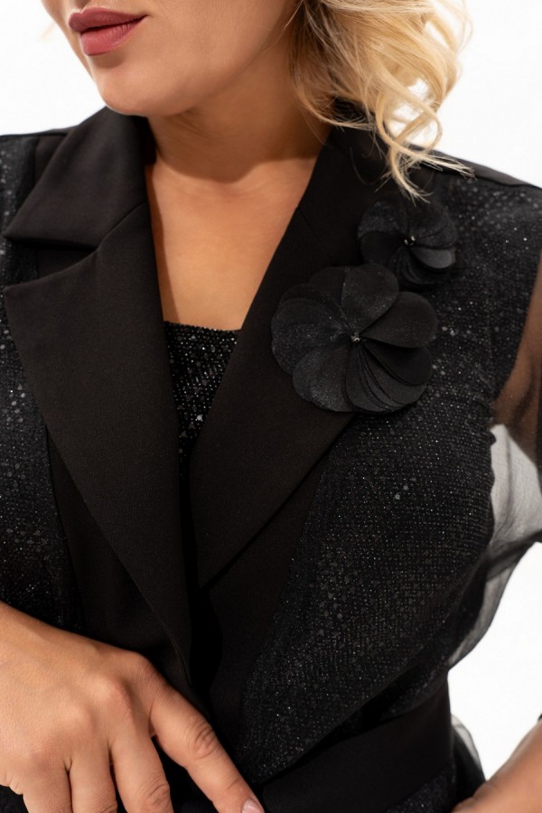 Состав:полиэстер - 65%, вискоза-32%, эластан - 3%, блуза-полиэстр-95%, эластан-5%Тканьбарби, органза, ткань "пайетки"