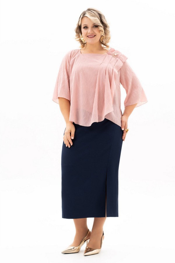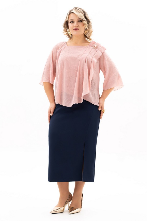 Длина рукава (см): 39 Длина блузы (см): 59 Длина юбки (см): 90 Описание: В мире моды женский костюм, состоящий из юбки и блузы, занимает особое место, объединяя элегантность, комфорт и практичность. Наш костюм, выполненный из высококачественной ткани c стрейч-эфектом. На полочки блузы есть нагрудные выточки с проймы, фигурный вырез горловины. Верхняя часть переда блузы декорирована мягкими складками и съёмной брошью, в боковых швах разрезы. Спинка без среднего шва. Модель блузы имеет и втачной рукав и реглан, длиной 3/4. Юбка демонстрирует утончённый дизайн с небольшим разрезом, который добавляет нотку игривости и женственности. Разрез не только делает образ более динамичным , но и придаёт ему определённую изюминку, позволяя Вам чувствовать себя уверенно и раскрепощено . Удобная и комфортная юбка на подкладке, слегка заужена к низу с застёжкой сзади на молнию и пуговицу. По поясу в области боковых швов есть эластичная тесьма, которая создаёт удобную посадку юбки на талии. Отличный вариант для офиса и вечернего гардероба, а также и просто для повседневного применения. Грация, изящество, утончённые декоративные элементы делают этот костюм уникальным. В этом костюме Вы будете неотразимы как в повседневной жизни, так и на любом торжестве.