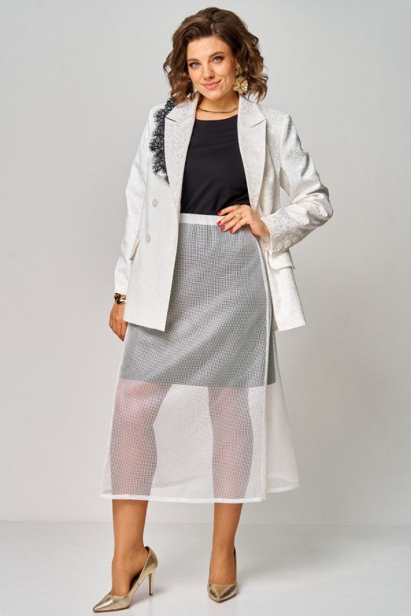 Состав:жакеn вискоза 60%, полиэстер 40%;платье хлопок 74%, полиэстер 24%, лайкра 2%; юбка полиэстер 100%