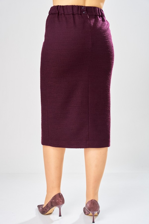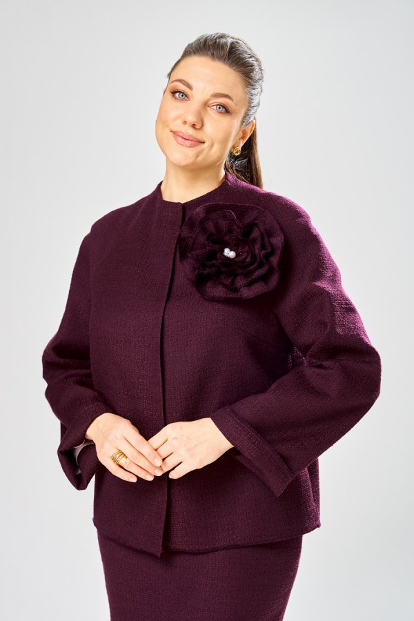 Длина жакета – 63 см Длина рукава от горловины – 77 см Длина юбки – 79 см Комплект женский 2-ка. Стильный женский комплект, выполнен из жаккарда с большим содержанием хлопка. Жакет прямого силуэта, с центральной застежкой на пришивные кнопки Горловина с цельновыкроенной стойкой, рукав реглан. Низ рукава и низ изделия с вытрепанным краем. Жакет украшен декоративной розой из основной ткани. Жакет на подкладке. Юбка карандаш, актуальной длины до середины икры. По переду и спинке центральные швы, в переднем шве по низу разрез, по спинке застежка молния, верх юбки оформлен отрезным поясом. Юбка на подкладке.