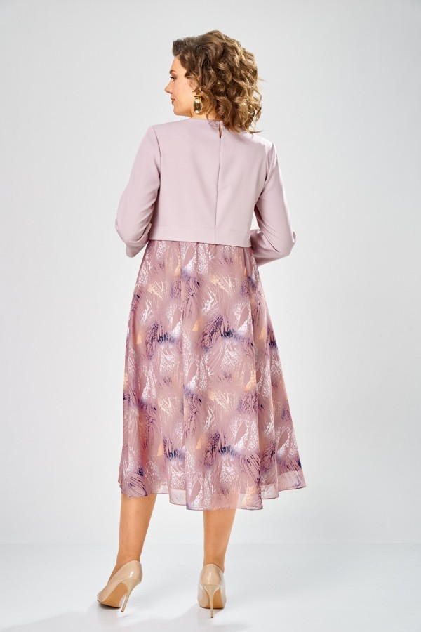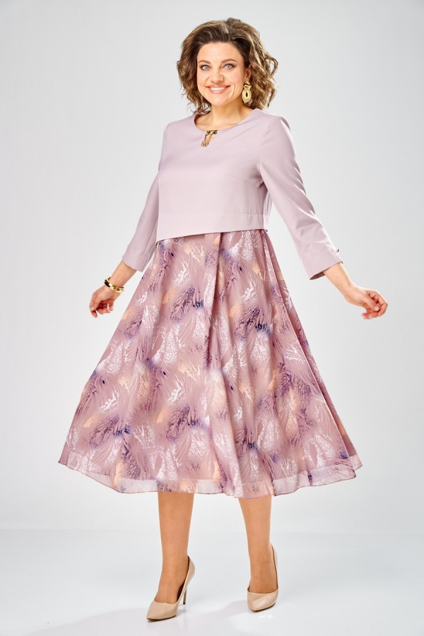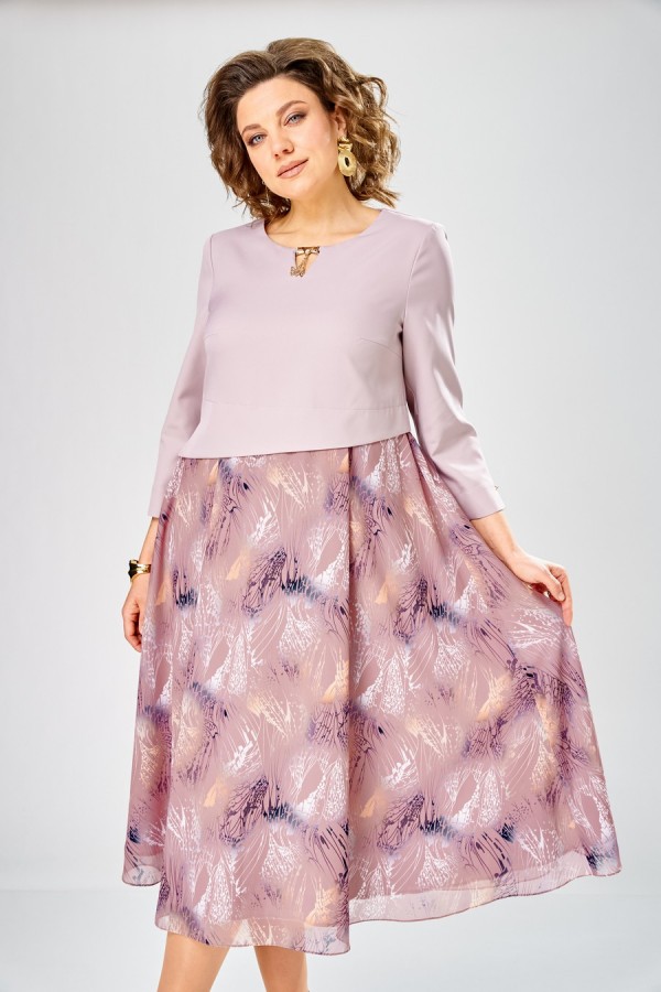 Длина платья – 113 см Длина рукава – 50 см Элегантное женское платье, выполнено из двух видов ткани. Лиф из плательной ткани, горловина круглая с декоративным элементом по центру, по низу лифа ответная складка, по переду низ асимметричный, рукава втачные, по низу декоративный элемент с пуговицей. Юбка платья из шифона, расширенная со складками, на подкладке.