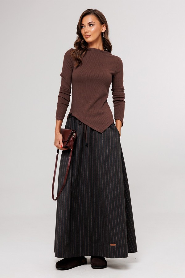 Джемпер трикотажный полуприлегающего силуэта с втачным одношовным рукавом, низ рукава фигурный. Полочка с фигурным низом и правый боковой шов к низу слегка переходит на перед. По переду нашивка "BUTER". Горловина, расширенная с невысокой цельнокроеной стойкой.брошь НЕ ИДЕТ в комплект к джемперу