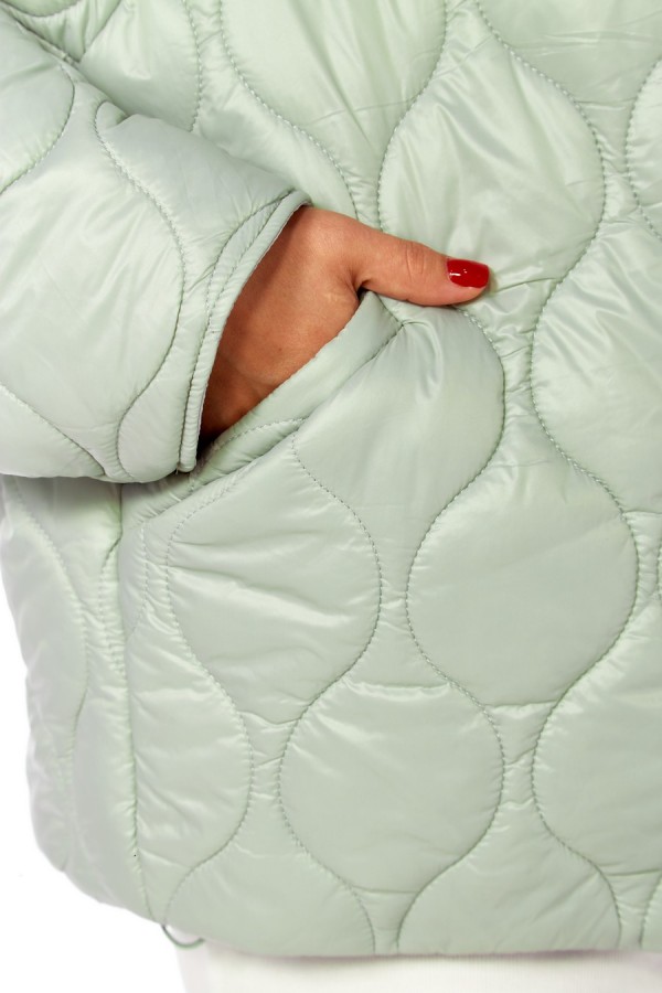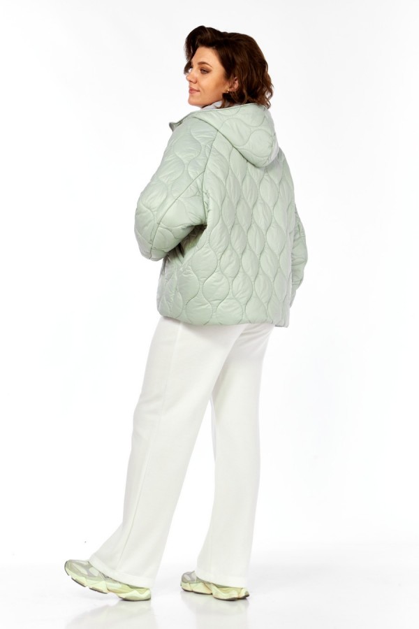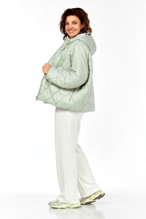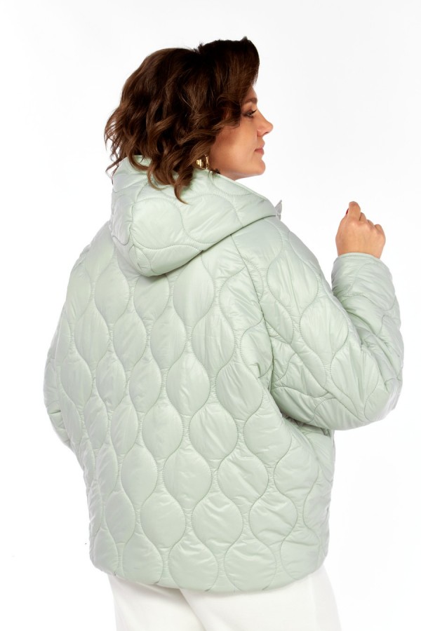 Куртка женская, О-образного силуэта с центральной застежкой на молнию. Спинка простая. Перед с боковыми карманами "с листочкой". Рукав-реглан . Воротник-капюшон. По низу куртки в подкладке обработана кулиса со шнуром и регулятором. Куртка на утеплителе. Температурный режим до -5 градусов. Длина по спинке 69 см, длина рукава+ширина плеча 77 см.