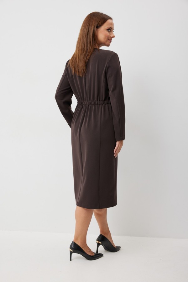 Платье миди в благородном шоколадном оттенке. Идеальная посадка и пояс позволяющий подчеркнуть линию талии. Универсальная модель для разных случаев жизни Длина по спинке-112, Длина рукава-112