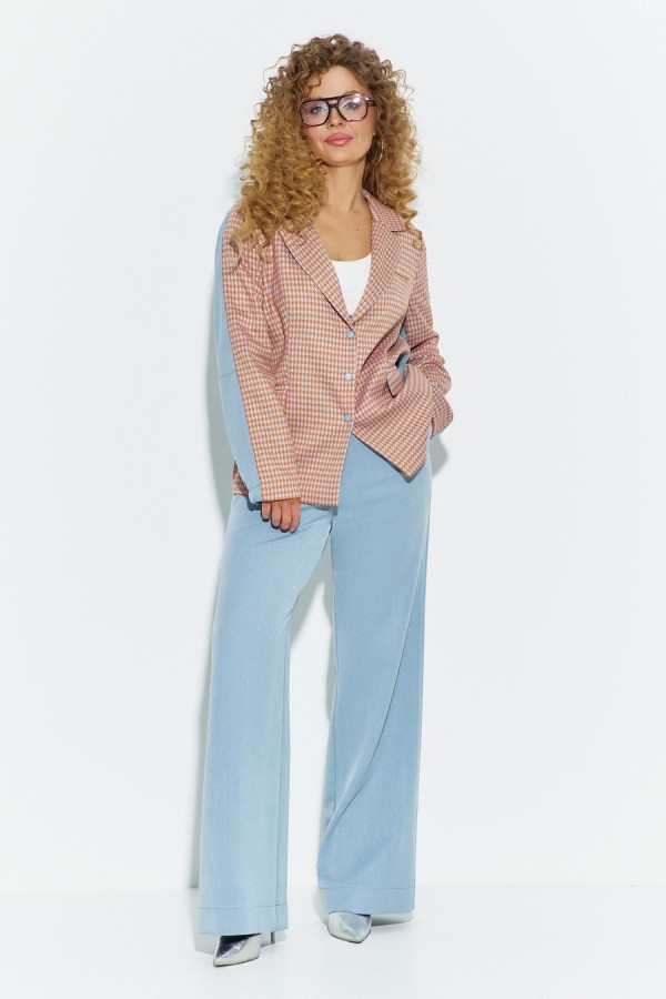 Состав:основная ткань полиэстер 78%, 18% вискоза, 4% спандекс;отделочная ткань полиэстер 85%, вискоза 13%, спандекс 2%, подкладка - полиэстер 55%, вискоза 45%