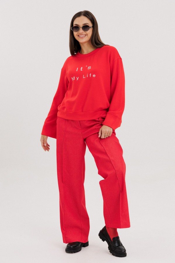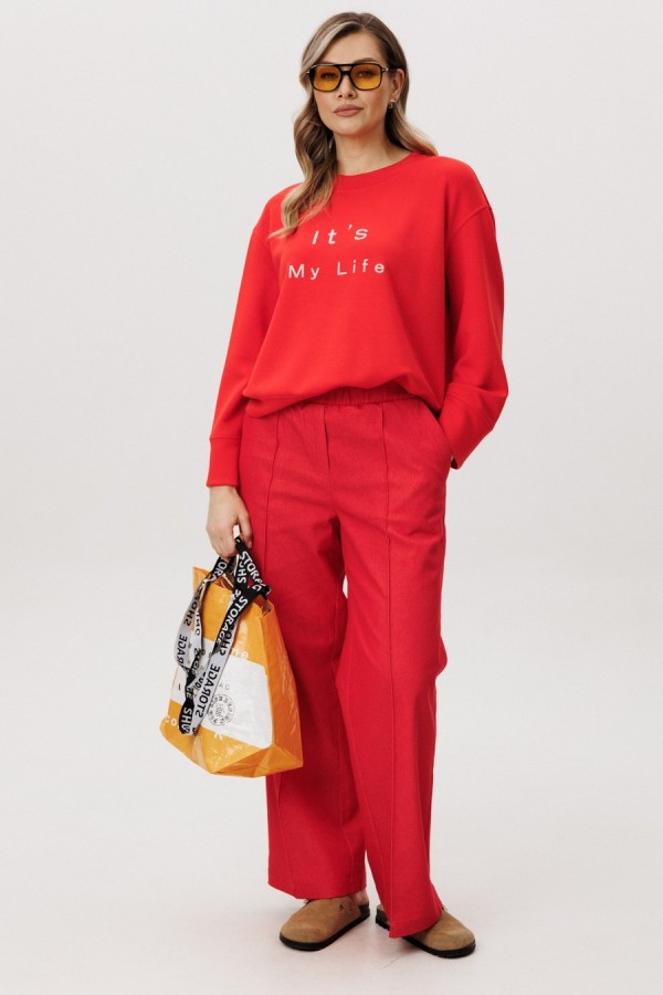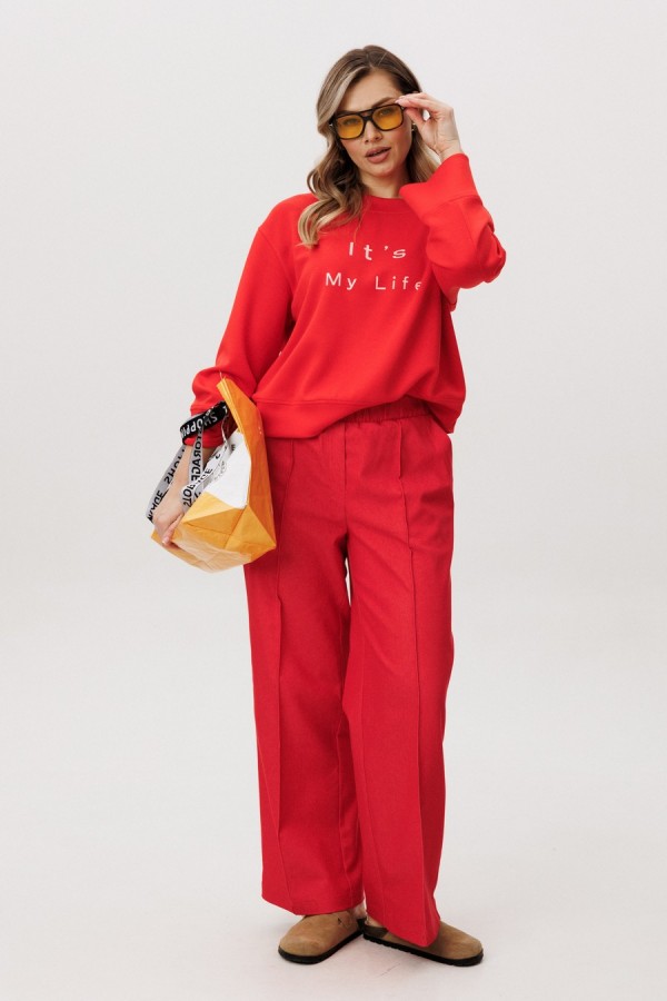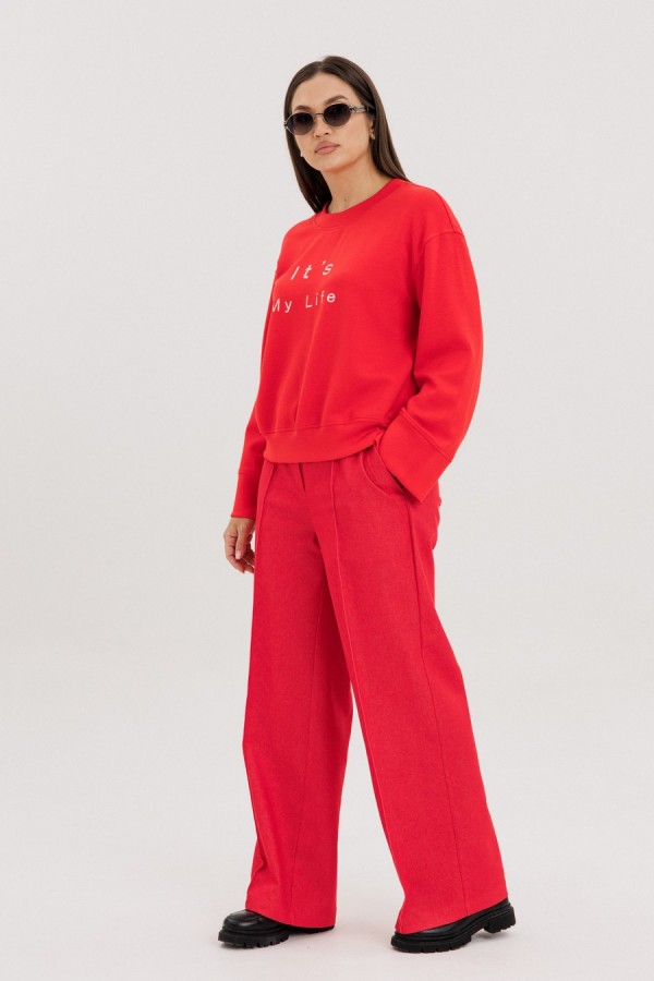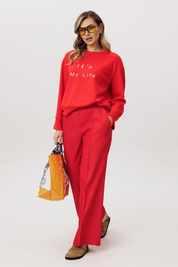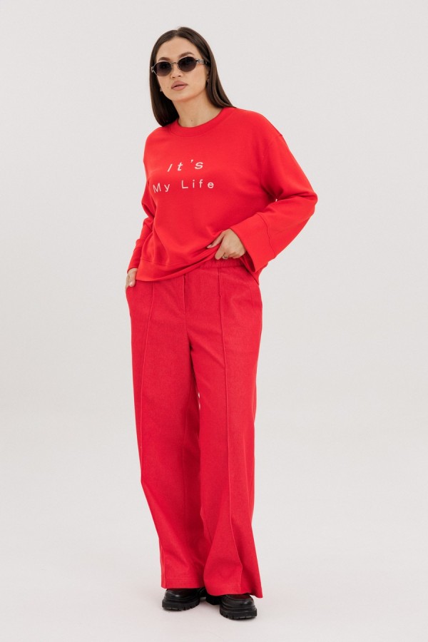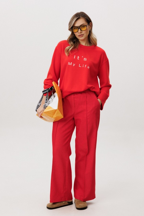 Состав:Джемпер пэ 72%, вискоза 12%, нейлон 10%, спандекс 6%Брюки хлопок 65%, пэ 35%
