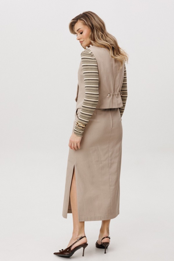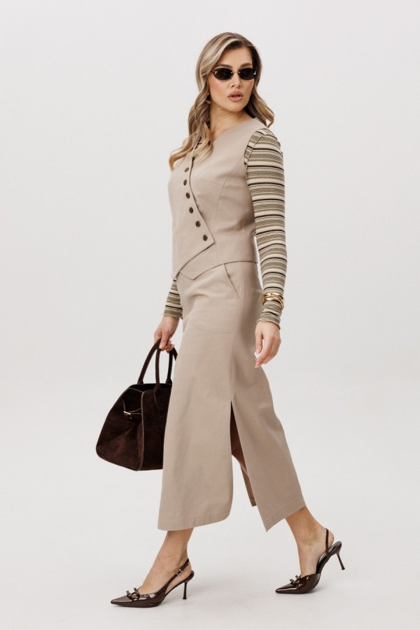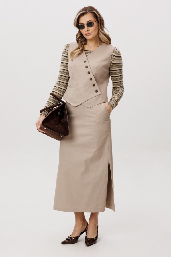 Состав:джемпер состав вискоза 75% пэ 25%жилет и юбка хлопок 99% эластан 1%
