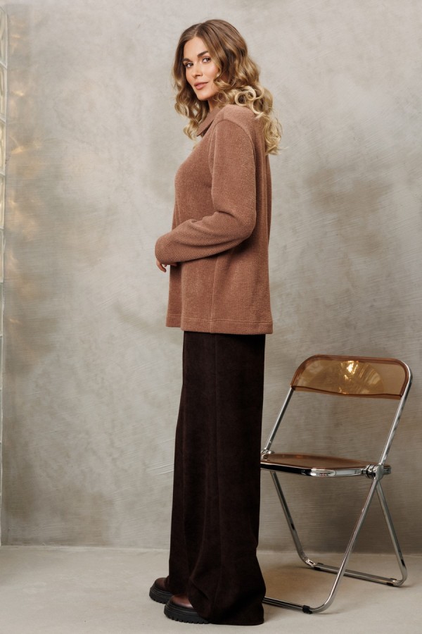 Состав:Джемпер- ПЭ 85%, вискоза 13%, спандекс 2%; брюки - ПЭ 100%