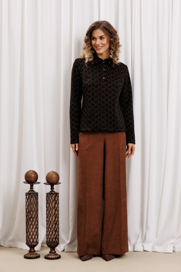 Состав:Джемпер - ПЭ 68%, вискоза 22%, люрекс -5%, спандекс -5%; брюки - ПЭ 100%