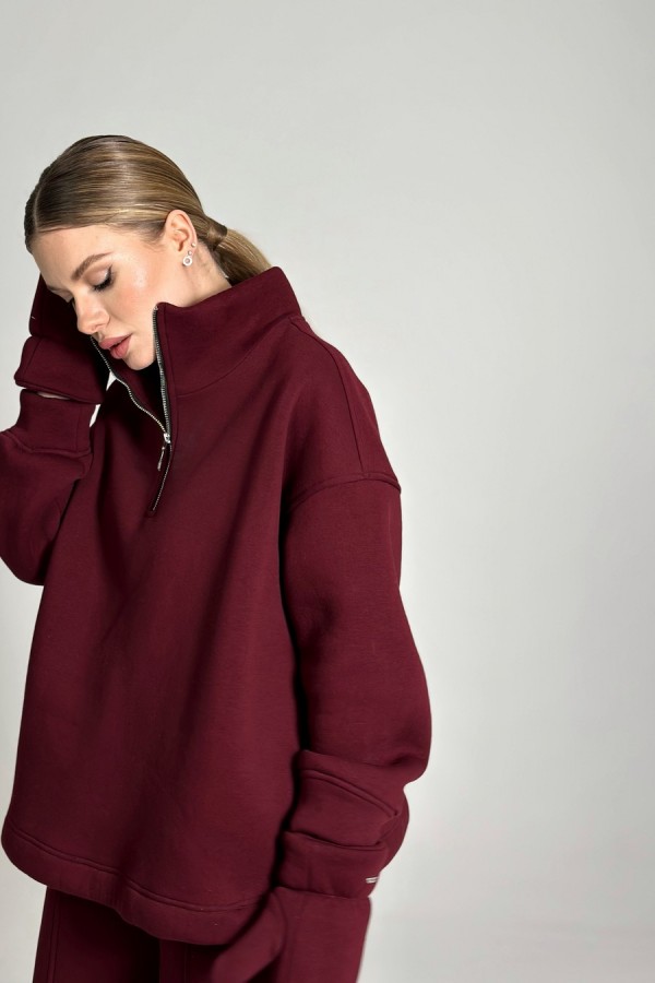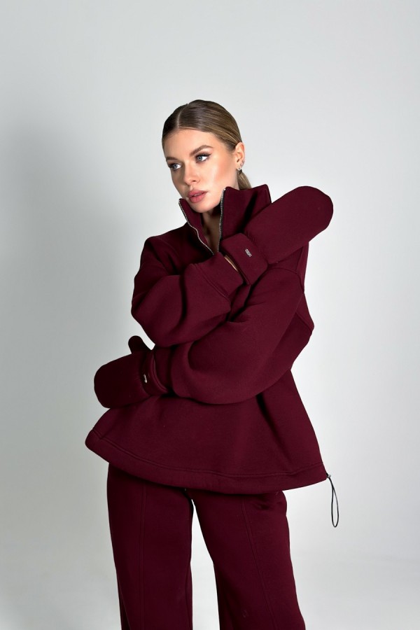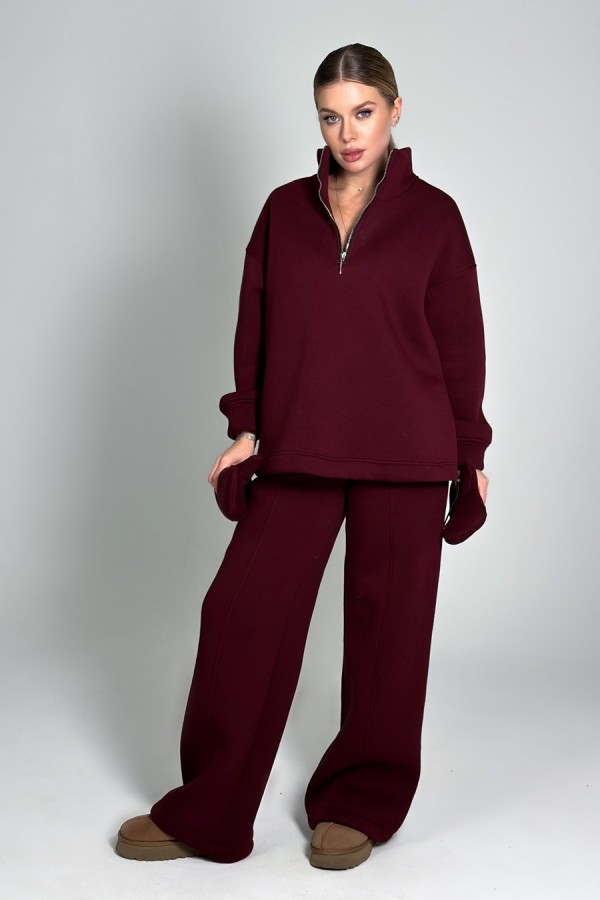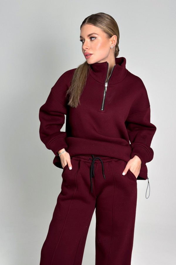Стильный и тёплый женский костюм из мягкого трикотажа с начёсом — идеальный выбор для повседневного комфорта и современного образа. Джемпер свободного оверсайз-кроя со спущенной линией плеча и объёмным рукавом на аккуратной резинке создаёт расслабленный, модный силуэт. Воротник-стойка с молнией длиной 25 см добавляет удобства, а ширина по низу регулируется эластичным жгутом с фиксаторами. В боковых швах — практичные карманы. Брюки палаццо прямого кроя обладают стильной шириной по низу (30–31 см ½) и рельефным швом по центру переда. Низ брюк также можно регулировать с помощью резинки-жгута и фиксаторов. Удобные угловые карманы в боковых швах завершают образ. Костюм отлично сидит, подчёркивает стиль и дарит комфорт каждый день.