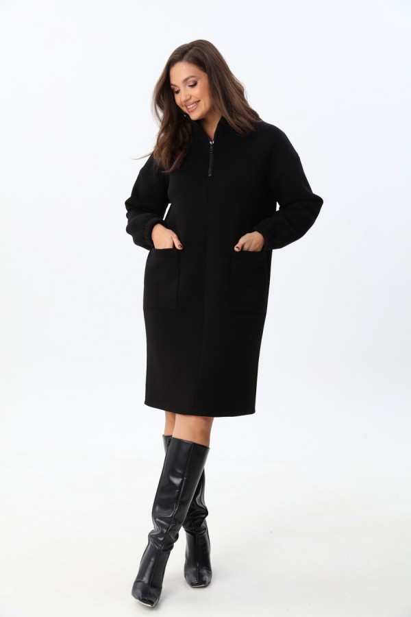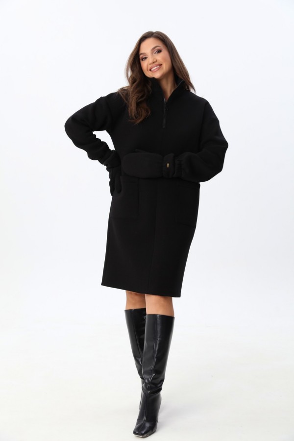 Стильное женское платье прямого силуэта, выполненное из мягкого трикотажа с начёсом, идеально подойдёт для прохладной погоды. Ткань приятная к телу, отлично держит форму и обеспечивает комфорт в течение всего дня. Спущенная линия плеча и одношовный рукав на удобной резинке создают современный, расслабленный силуэт. На передней части расположены практичные прямоугольные накладные карманы, аккуратно входящие в боковой шов — функционально и в тренде. На спинке расположена кокетка по линии лопаток, обеспечивающая хорошую посадку изделия. Воротник-стойка высотой 8 см с застёжкой на молнию длиной 25 см добавляет модели оригинальности и удобства.