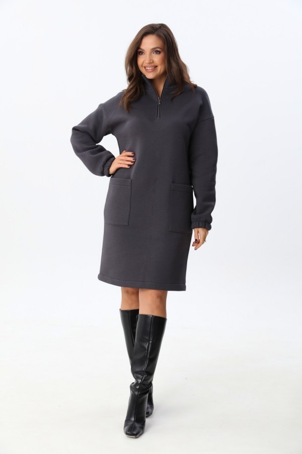 Стильное женское платье прямого силуэта, выполненное из мягкого трикотажа с начёсом, идеально подойдёт для прохладной погоды. Ткань приятная к телу, отлично держит форму и обеспечивает комфорт в течение всего дня. Спущенная линия плеча и одношовный рукав на удобной резинке создают современный, расслабленный силуэт. На передней части расположены практичные прямоугольные накладные карманы, аккуратно входящие в боковой шов — функционально и в тренде. На спинке расположена кокетка по линии лопаток, обеспечивающая хорошую посадку изделия. Воротник-стойка высотой 8 см с застёжкой на молнию длиной 25 см добавляет модели оригинальности и удобства.
