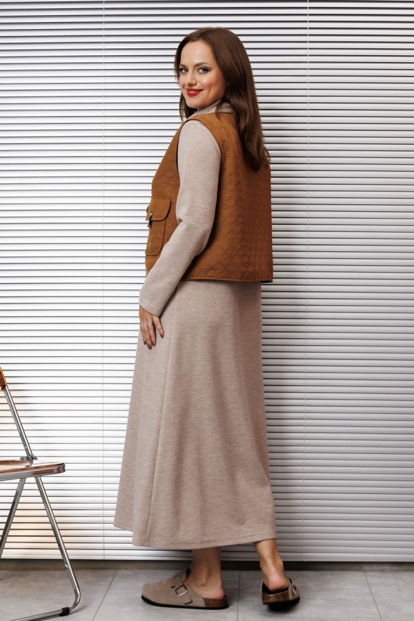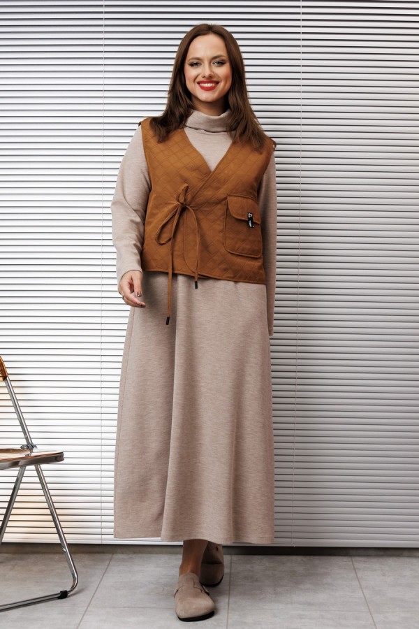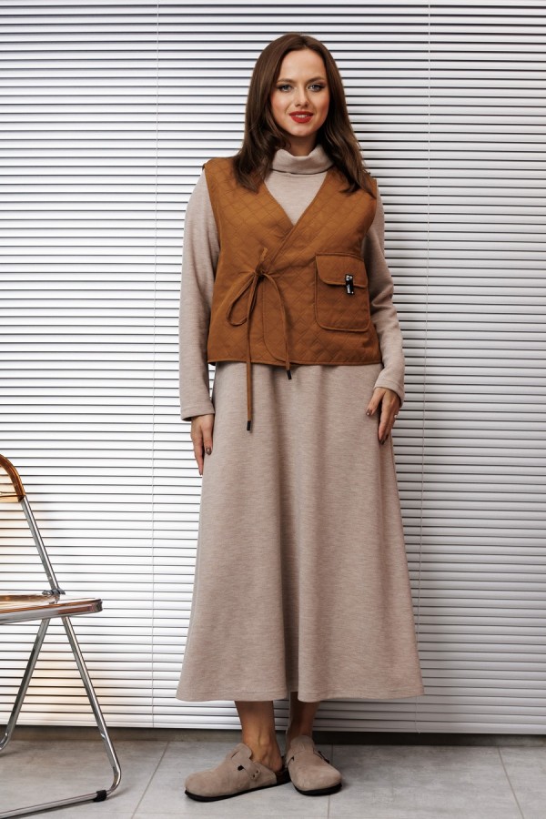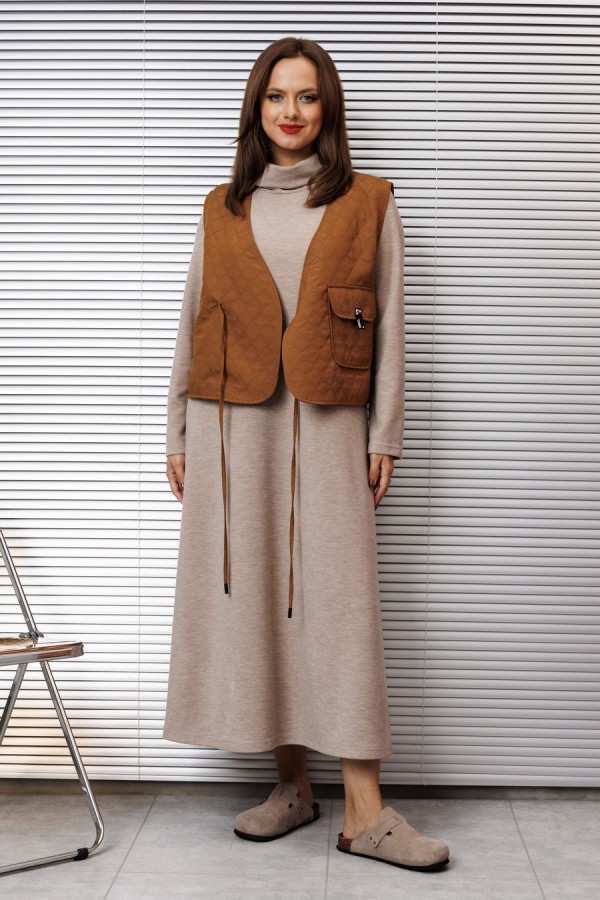 Состав:жилет - 100% полиэстер, подкладка - 100% полиэстерПлатье – 38% полиэстер, 31% нейлон, 28% вискоза, 3% спандекс