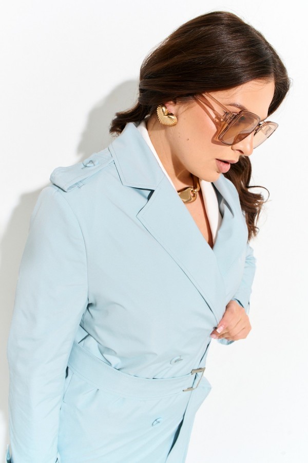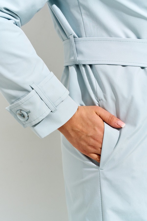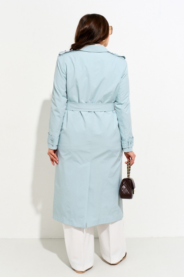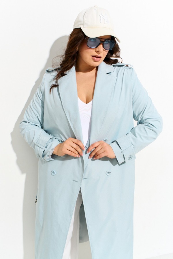 Женский демисезонный двубортный плащ свободного силуэта на подкладке выполнен из плащевой ткани с водоотталкивающим эффектом; в боковых швах карманы; рукава втачные, по низу которых вставлена декоративная пата; по плечевым швам погоны; застежка по переду на петли и пуговицы; по спинке высокая шлица. Плащ полностью соотвествует заявленному размеру. Пожалуйста, пользуйтесь таблицей измерений готового изделия. Уход за тканью: - стирать при температуре не выше 30 градусов при бережном режиме или ручной стирке.