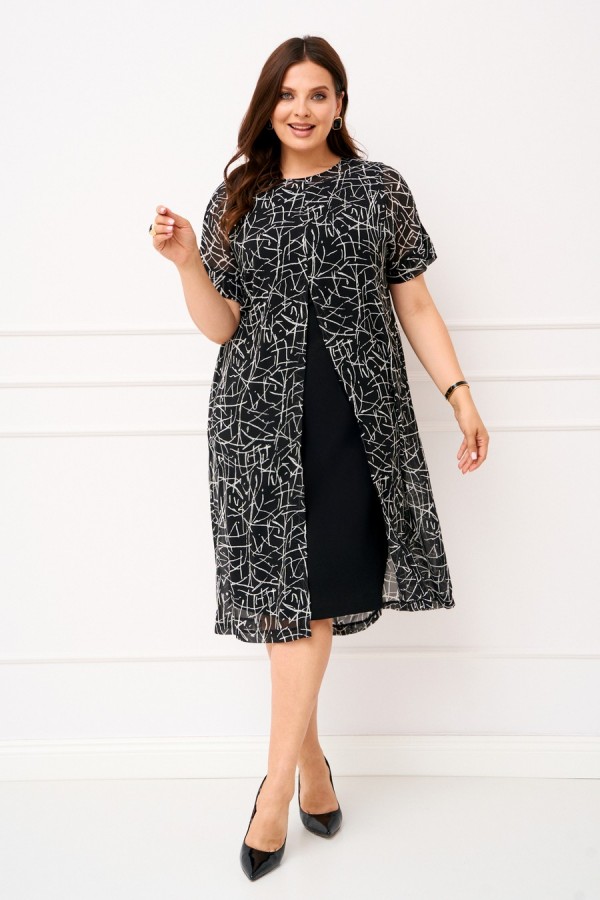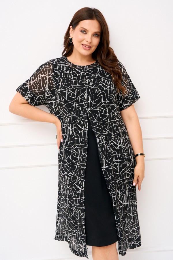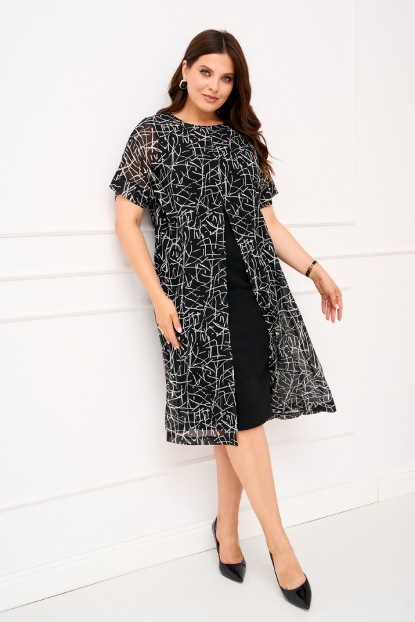 Состав:Верхнее платье шифон полиэстер 100%; нижнее платье плательный креп вискоза 25%, полиэстер 70%, спандекс 5%.