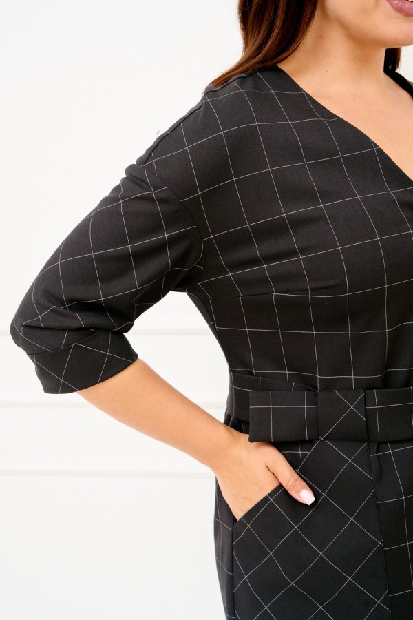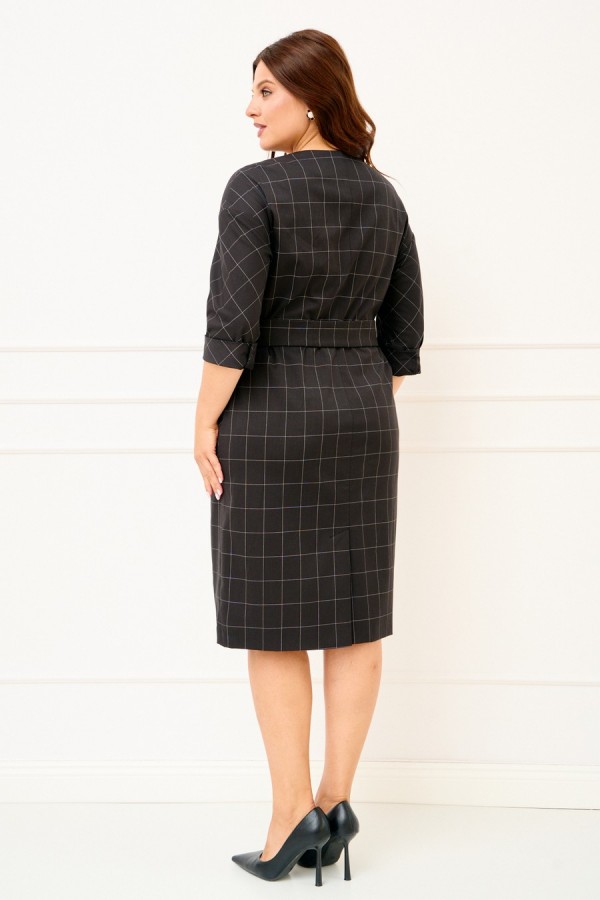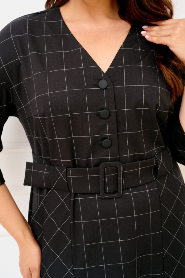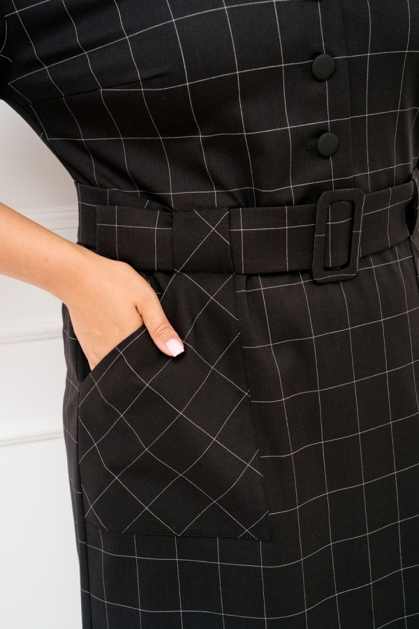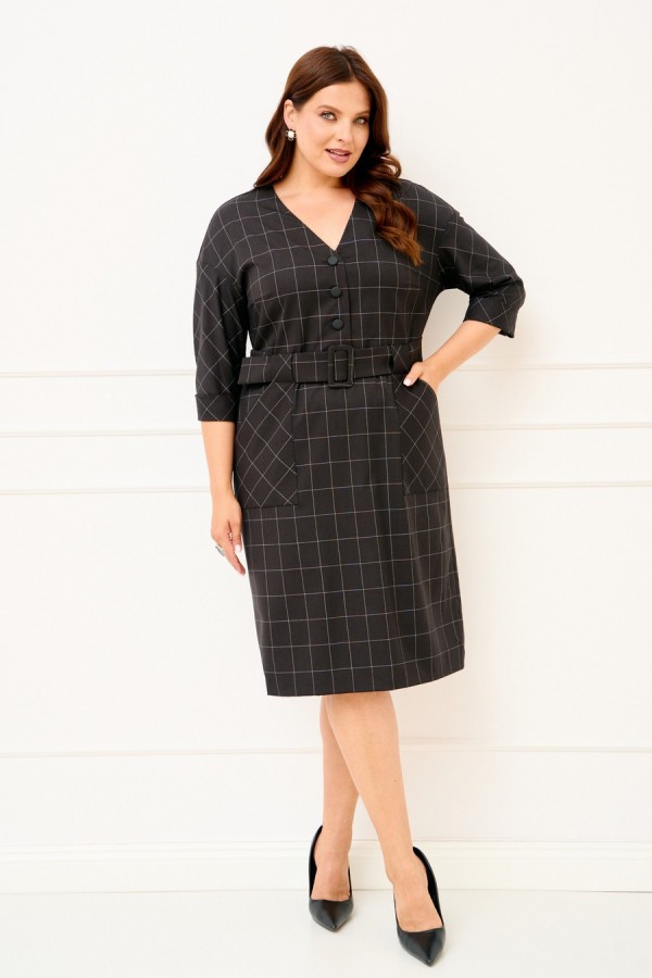 Женское платье полуприлегающего силуэта выполнено из плательной ткани "в клетку". Изделие с горловиной V-образной формы застегивается на петли и пуговицы и имеет рукава со спущенной линией плеча и манжентой по низу. По переду платья находятся накладные функциональные карманы, переходящие в шлевку, которая держит пояс. В комлекте съемный пояс из основной ткани. Платье полностью соотвествует заявленному размеру. Пожалуйста, пользуйтесь таблицей обмеров готового изделия. Уход за плательной тканью: - стирать при температуре не выше 30 градусов при бережном режиме или ручной стирке.