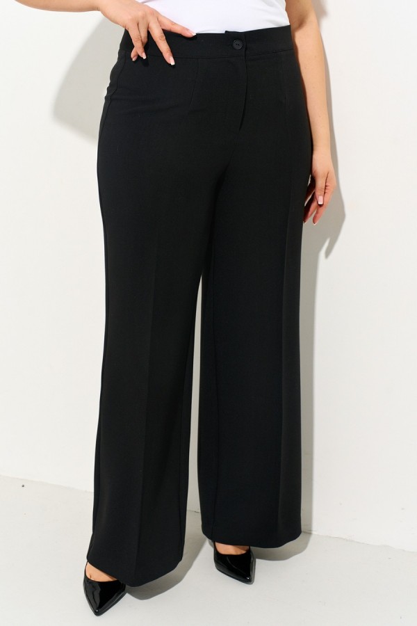 Костюм женский двубортный полуприлегающего силуэта на подкладке, состоящий из жакета и брюк, выполнен из костюмной ткани средней плотности. Рукава изделия втачные; вырез горловины округлой формы; застегивается на петли и пуговицы. Классические брюки прямого силуэта выполнены с притачным поясом на эластичной резинке по спинке для лучшего прилегания; застежка на молнию, петлю и пуговицу. Костюм полностью соотвествует заявленному размеру. Пожалуйста, пользуйтесь таблицей измерений готового изделия . Уход за костюмной тканью: - при стирке в стиральной машине выбрать бережный либо деликатный режим; - температура воды не выше 40 градусов.
