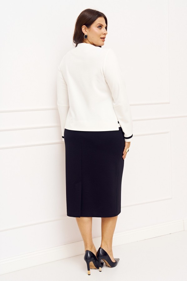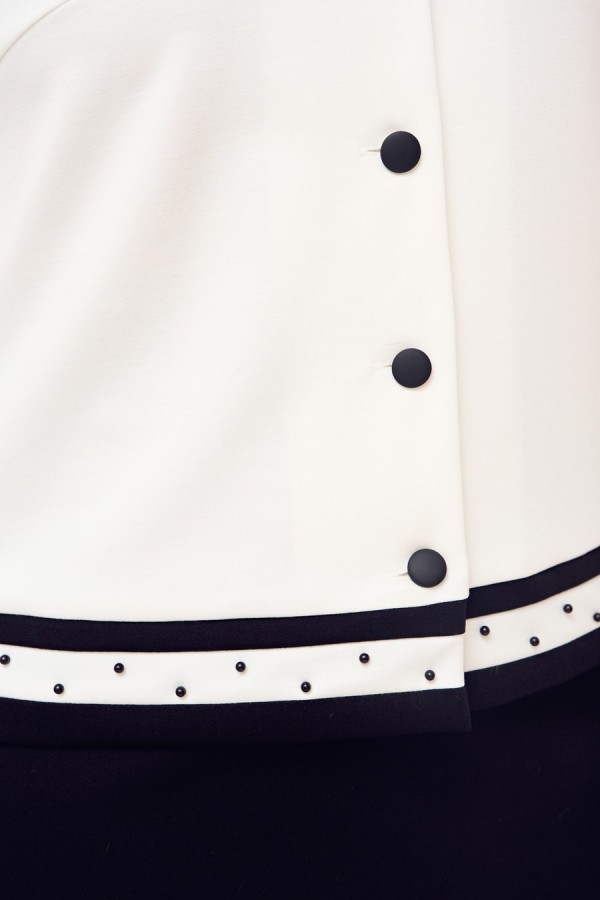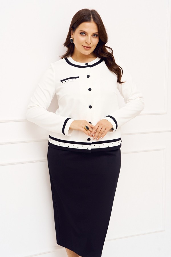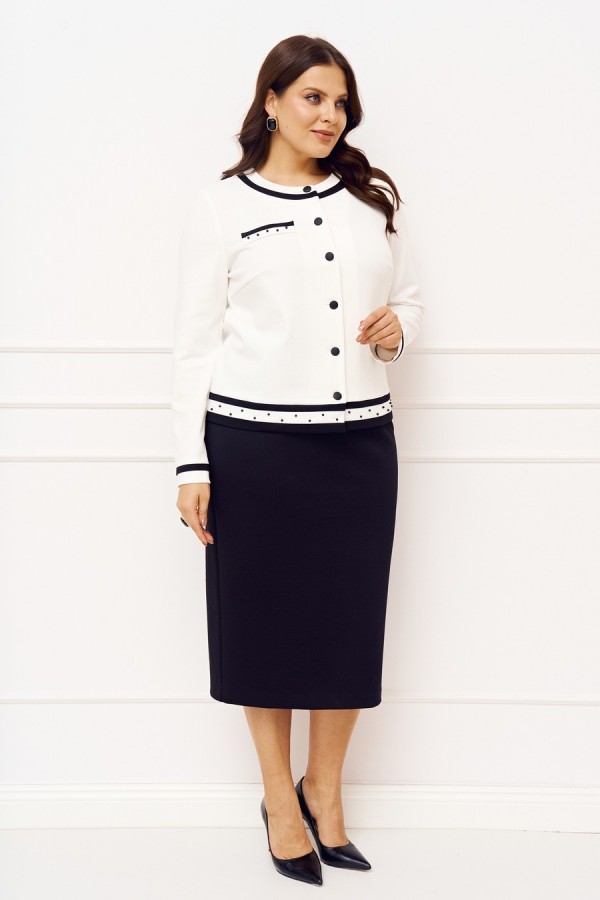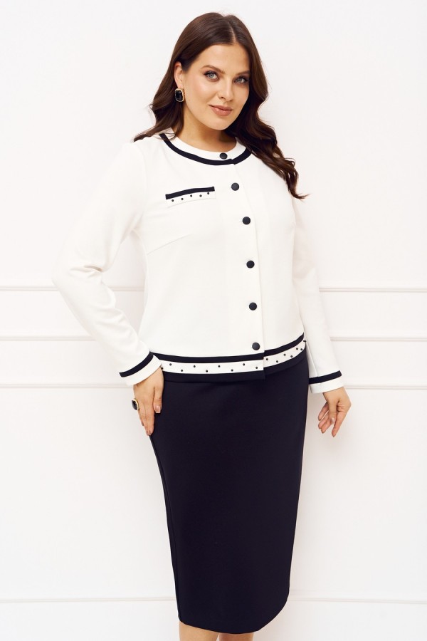 Состав:Трикотаж средней плотности вискоза - 70%, полиэстер - 25%, спандекс 5%. Подкладка жакета и юбки полиэстер 100%.