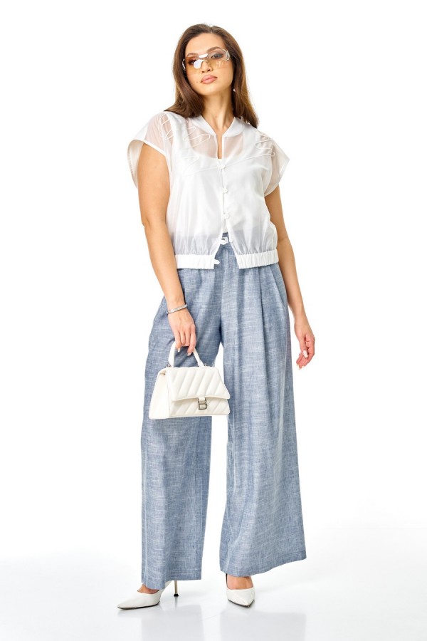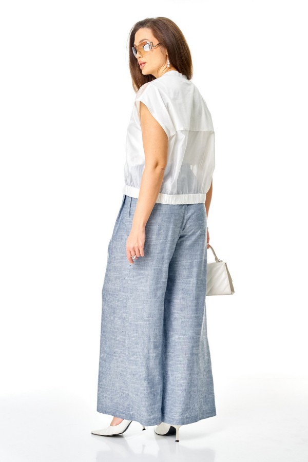Состав:жилет вискоза 83% полиэстер 17%, топ хлопок 92% эластан 8%, брюки вискоза 70% лен 30%