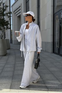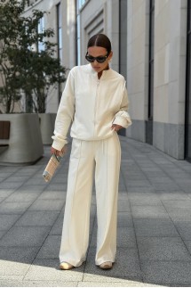 Еще не нашли свой идеальный комплект? У нас вы сможете купить женский брючный костюм белорусского производства с разными вариантами верха. Элегантные сеты с пиджаком вобрали в себя все лучшее от делового и повседневного стиля. Среди дизайнерских решений представлены модели с широкими брюками с высокой посадкой и удлиненным двубортным жакетом или пиджаком-оверсайз. Модели можно дополнить изящной блузкой, лаконичной рубашкой, базовой водолазкой, парой обуви на каблуке, ботильонами, лоферами или белыми кроссовками. Лаконичные ансамбли отличаются строгостью, отшиты из плотной однотонной ткани. Это вечная классика, уместная в офисе и на официальном приеме. В качестве низа предусмотрены кюлоты, дудочки, палаццо. Для прогулок предусмотрены минималистичные комплекты в стиле спорт-шик из плотного трикотажа одного цвета и фактуры.