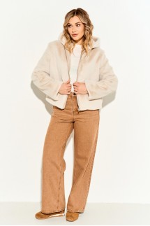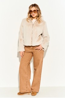 - Дамам с фигурой «яблоко» следует обратить внимание на модели, которые маскируют живот. В этом случае подойдет асимметричная куртка оверсайз, где спинка длиннее переда.