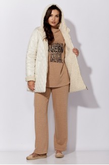 - Леди с фигурой «яблоко» почувствуют себя элегантно в моделях оверсайз без пояса. Силуэт дополнительно уменьшит V-образный вырез и застежка на одну пуговицу.