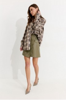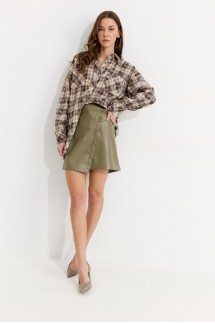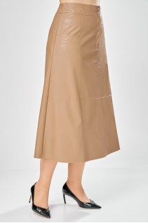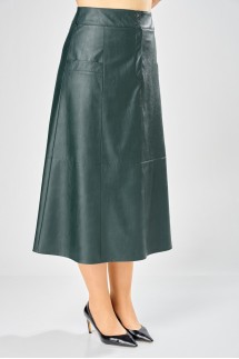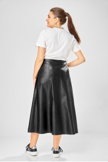 - Юбка из экокожи от брендов из Белоруссии — вещь для уверенных в себе леди. Выполнена из приятного на ощупь пластичного материала. В тандеме с oversize-пуловером или классической рубашкой подойдет для кэжуал-формата или даже офисной капсулы.