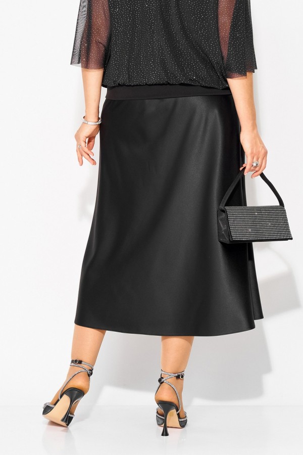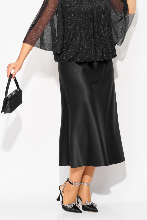 Юбка длиной миди, выполнена из атласного сатина, на трикотажной подкладке. Модель за счет выверенного кроя по-косой смотрится роскошно и элегантно. Пояс на круговой резинке обеспечивает 100% посадку по фигуре. Имея универсальный практичный цвет, юбка чёрная женская отлично гармонируют со всеми цветами, что позволяет сочетать её с любым вашим гардеробом. Модная юбка шелковая позволит собрать стильный и незаурядный красивый наряд на свидание, новый год, корпоратив, фотосессию, выпускной. Как юбка вечерняя женская пригодится в театр, ресторан, свадьбу или даже на танцы. Длина – 88 см.