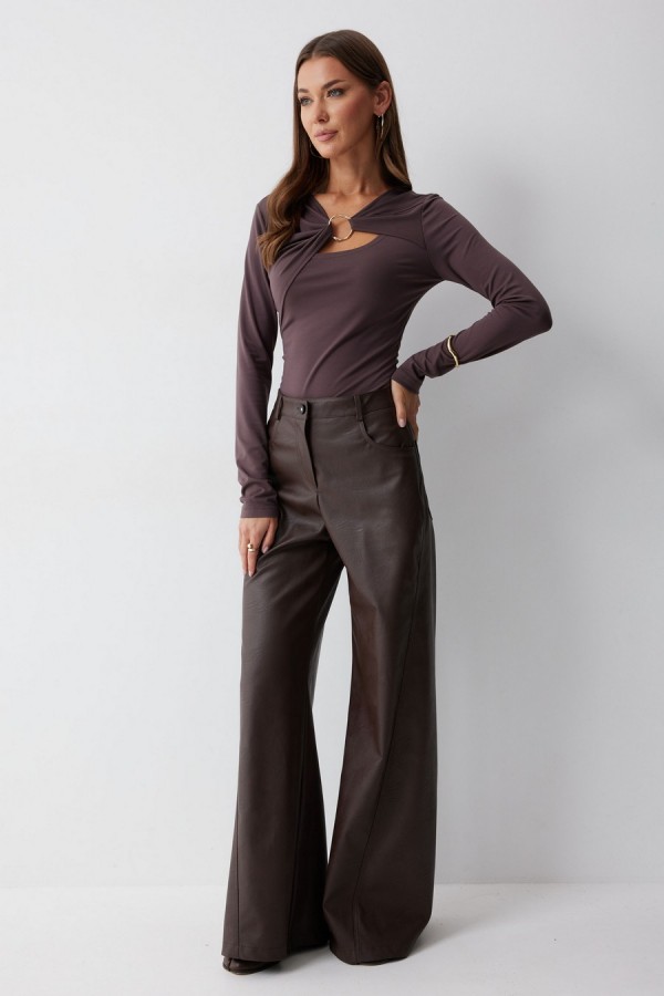 Джемпер прилегающего силуэта из трикотажного полотна. Горловина с фигурным вырезом декоративными складками и фурнитурой. Рукав втачной удлиненный . Обращаем ваше внимание, что фурнитура может отличаться от фото.Длина блузки (44-48р - 57см)(50-54р - 60см) Длина рукава 63см