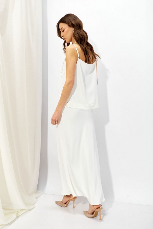Базовый топ в бельевом стиле из струящейся ткани прямого силуэта с V-образным вырезом на тонких регулируемых бретелях. Его можно носить отдельно или в многослойных образах.Длина по спинке 44-48 – 40см +бретель, 50-54 -42,5 см +бретель, 58-60 -45 см + бретель