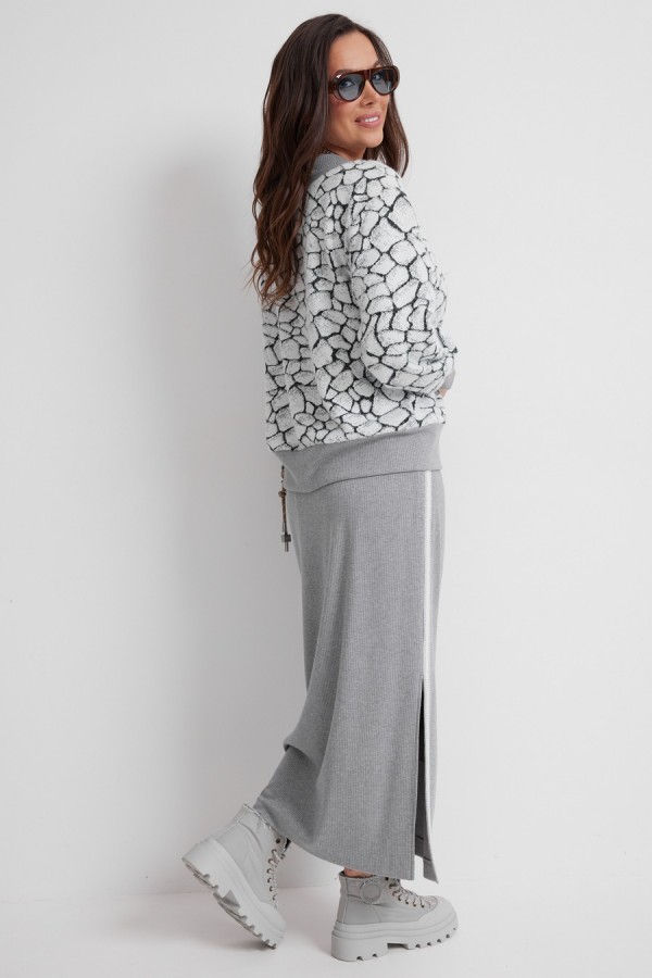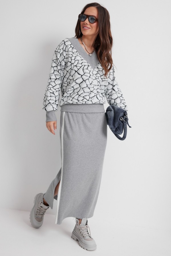 Состав:Джемпер Вискоза50% ПЭ25% ПА20% Юбка Вискоза48% ПЭ27% Спандекс4%