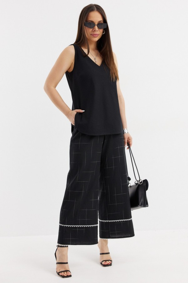 Состав:Кардиган Хлопок80% Нейлон20% Топ Вискоза70% Лен30% Брюки Лен78% Вискоза22%