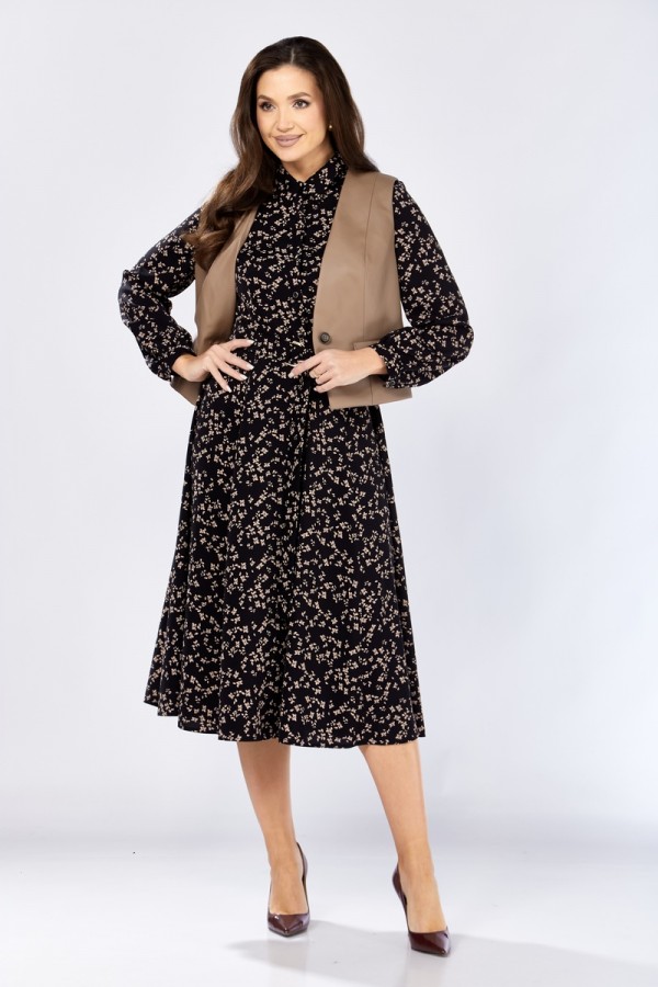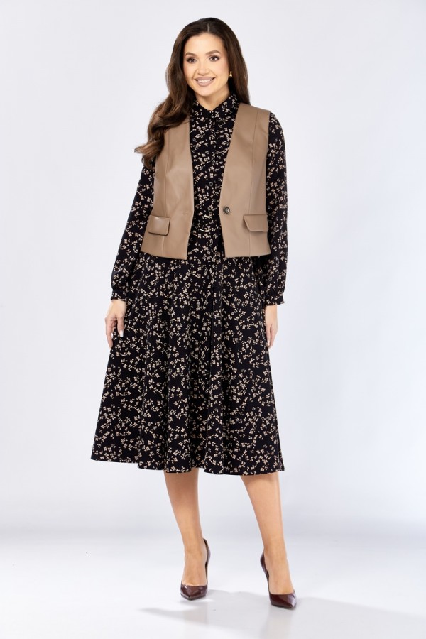 Состав:Платье полиэстер - 70%, вискоза - 25%, спандекс - 5%. Жилет полиэстер - 65%, хлопок - 35%.