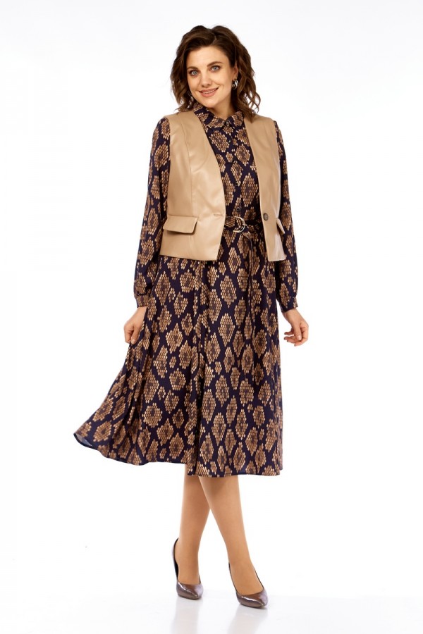 Состав:Платье полиэстер - 70%, вискоза - 25%, спандекс - 5%. Жилет полиэстер - 65%, хлопок - 35%.
