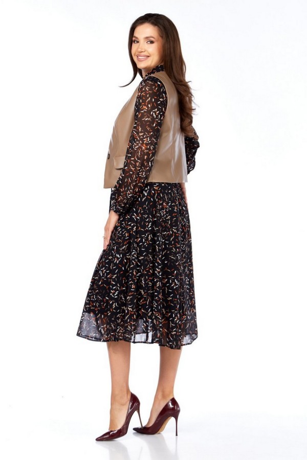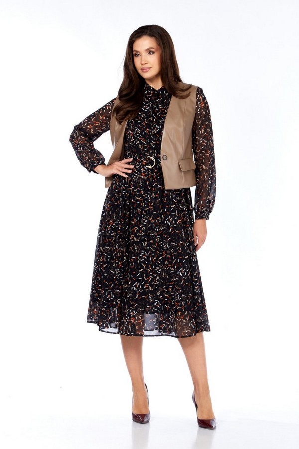 Состав:Платье вискоза - 60%, полиэстер - 35%, спандекс - 5%. Жилет полиэстер - 65%, хлопок - 35%.