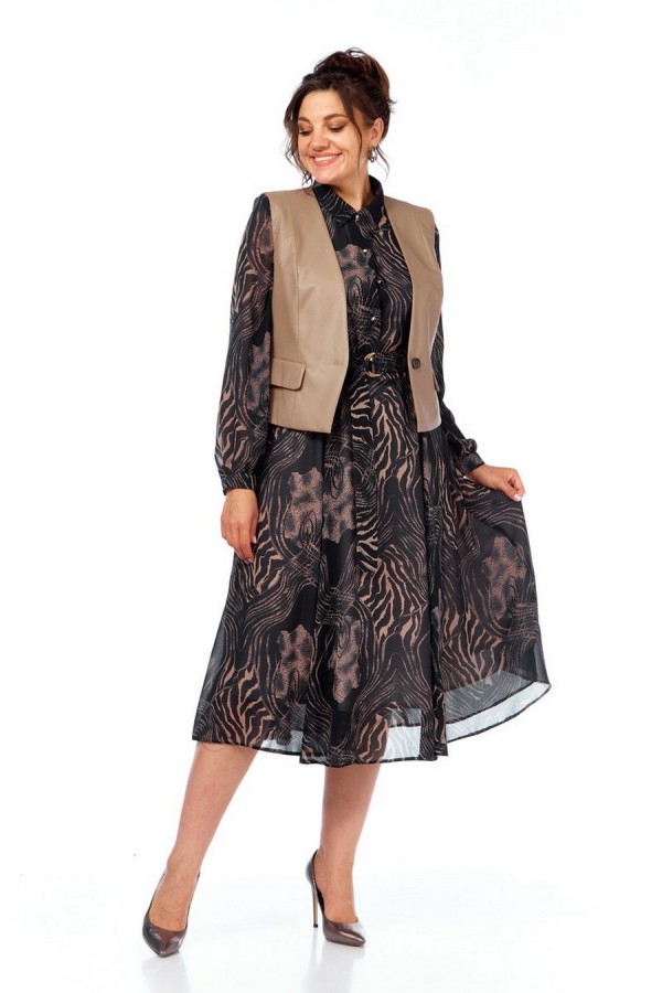 Состав:полиэстер - 70%, вискоза - 25%, спандекс - 5%. Жилет полиэстер - 65%, хлопок - 35%.