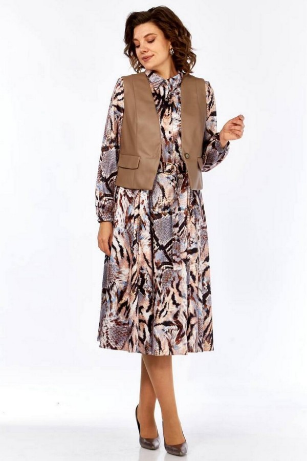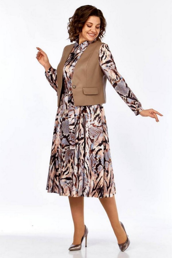 Состав:вискоза - 60%, полиэстер - 35%, спандекс - 5%. Жилет полиэстер - 65%, хлопок - 35%.