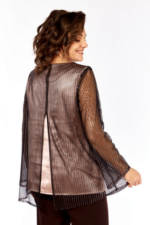 Состав:Блуза полиэстер - 70%, вискоза - 25%, спандекс - 5%; брюки полиэстер - 66%, вискоза - 29%, спандекс - 5%.