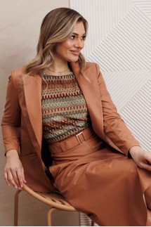 Коллекция ориентирована на успешную, социально активную женщину, которая следит за последними тенденциями моды, ценит практичность, удобство. ТМ представляет самодостаточные аутфиты. Образы подойдут для офиса, торжества, достаточно подобрать обувь, сумочку, аксессуары. Это: