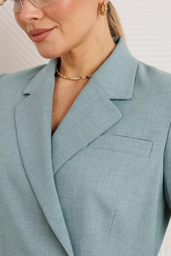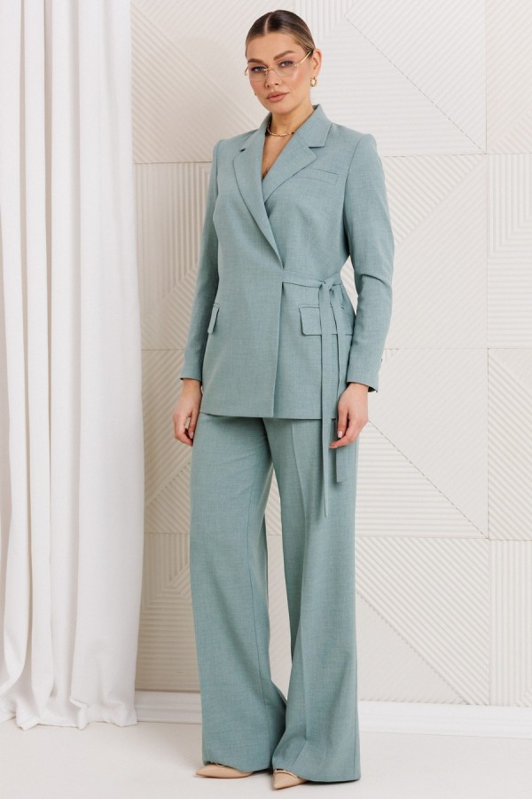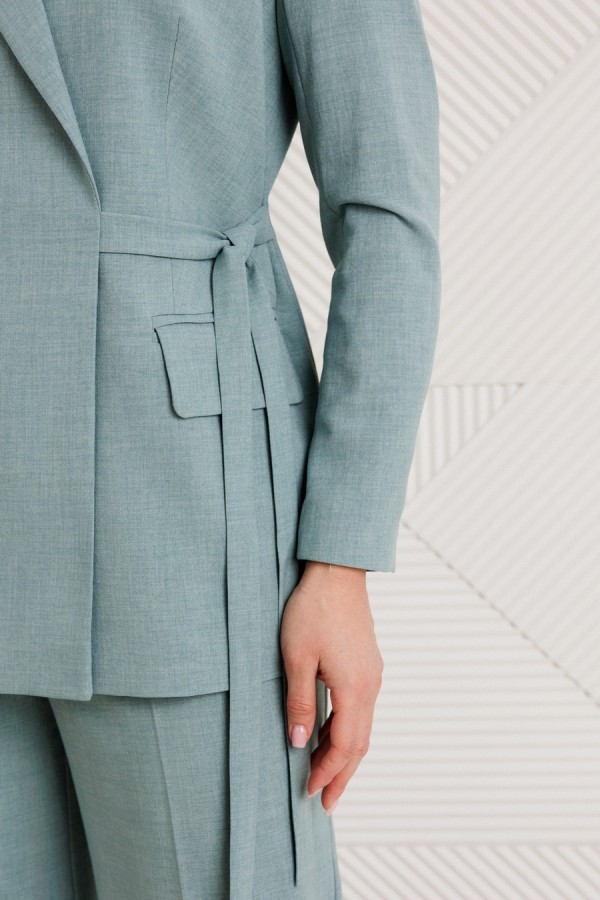 длина спинки жакета: 71 см длина рукава: 61 см длина брюк: 106 см рост: 164 см материал: жакет, брюки лен 51% вискоза 49% ОПИСАНИЕ ТЕХНИЧЕСКОЕ: Женский трендовый костюм, состоящий из жакета и брюк. Жакет полуприлегающего силуэта, удлиненный, со смещенной бортовой застежкой на завязку и потайную пуговицу. По переду талиевые вытачки, выходящие от горизонтальных подрезов, в которых обработаны карманы в рамку с клапанами. На груди обработана листочка, имитирующая нагрудной карман. Спинка со средним швом и талиевыми вытачками. Рукав втачной, двухшовный, со шлицей. На шлицах по две декоративных пуговиц. Воротник пиджачного типа. Жакет на подкладке. Брюки на притачном поясе с резинкой, прямые, со складкой по талии и с заутюженными кантами. По бокам обработаны карманы. Брюки с завышенной талией, свободной формы, выгодно подчеркивают изящность ног и придают fashion-нотку образу. Удобная в носке ткань, хорошая посадка по фигуре, универсальность и лаконичность модели не оставят равнодушной ни одну женщинуТаблица измерений изделия в готовом виде