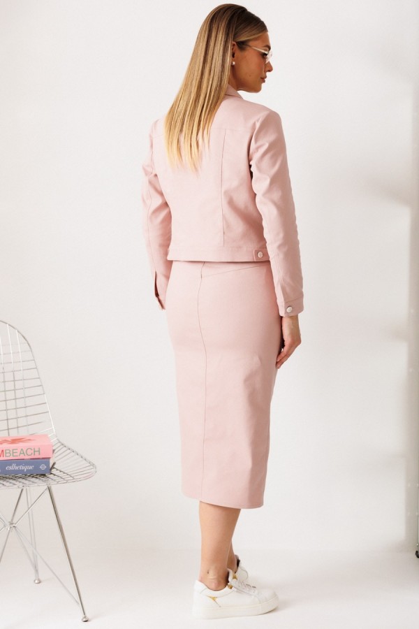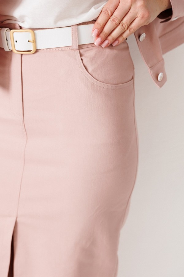 длина юбки: 75 см длина куртки: 50,5 см длина рукава: 59 см рост: 164 см материал: куртка, юбка хлопок 70% ПЭ 29% эластан 1% (джинс) ОПИСАНИЕ ТЕХНИЧЕСКОЕ: Комплект состоит из куртки и юбки, выполненных из джинсового полотна. Джинсовая юбка миди - это не только модно, но и удобно. Она сочетает в себе стиль и комфорт, подходит для различных ситуаций и выглядит прекрасно на любой фигуре. Мы предлагаем прямую юбку-карандаш с разрезом. Разрез вносит шарм, романтичность и добавляет нотку эротичности женскому образу. Карманы придают спортивность. На задней половинке юбки - кокетка и средний шов. Застежка спереди на молнию. Верхний срез юбки обработан притачным поясом. К юбке прилагается ремень. Куртка полуприлегающего силуэта. Полочка с отрезной кокеткой, рельефными швами от кокетки до низа куртки. Спинка с отрезной кокеткой и рельефными швами. По низу куртки идет притачная планка, которая на боковых швах украшена настрочными патами. Рукав втачной, двухшовный. Застежка центральная на петли-пуговицы. Рельефы кокетки, клапаны и воротник отстрочены двойной отделочной строчкойТаблица измерений изделия в готовом виде